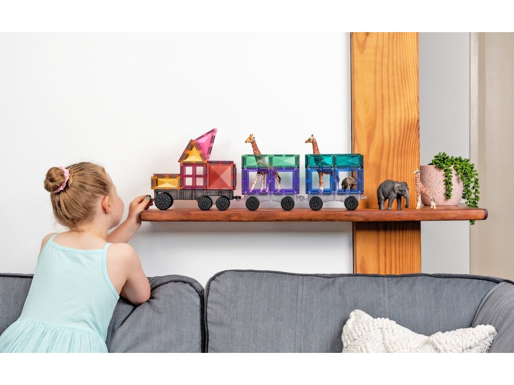 Barevná magnetická stavebnice podporuje kognitivní i motorický rozvoj, kreativitu, jemnou a hrubou motoriku, koordinaci oko-ruka, představivost, spolupráci i učení pomocí hry. Díky magnetickým stavebnicím se děti učí pomocí konceptu STEM (propojení přírodních věd, techniky, technologie a matematiky) - objeví tak například fungování gravitace, magnetismu, pohybu či pákový efekt nebo jak na co nejlepší konstrukci, aby postavily co největší stavbu, která nespadne. Postavte rakety, hrady, vozidla nebo zvířata, zkrátka cokoliv vás napadne. Stavět lze 2D i 3D, tak hurá do toho!