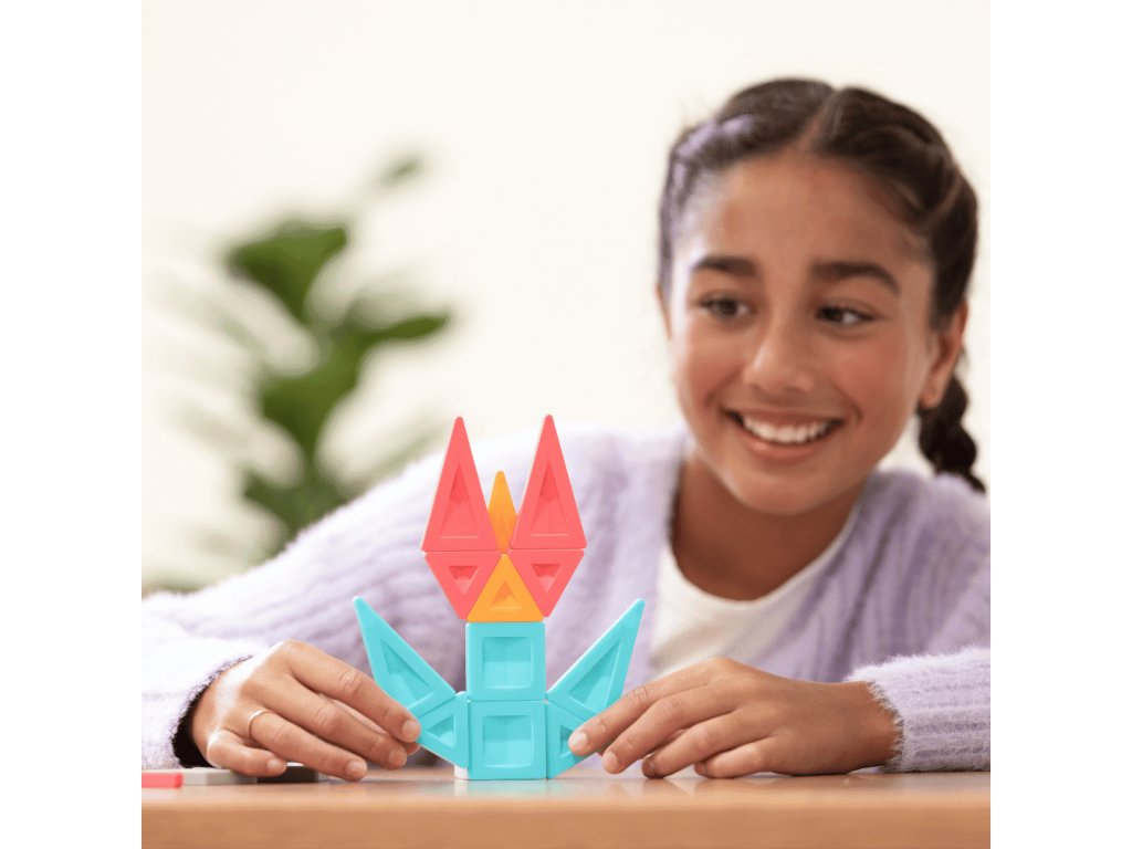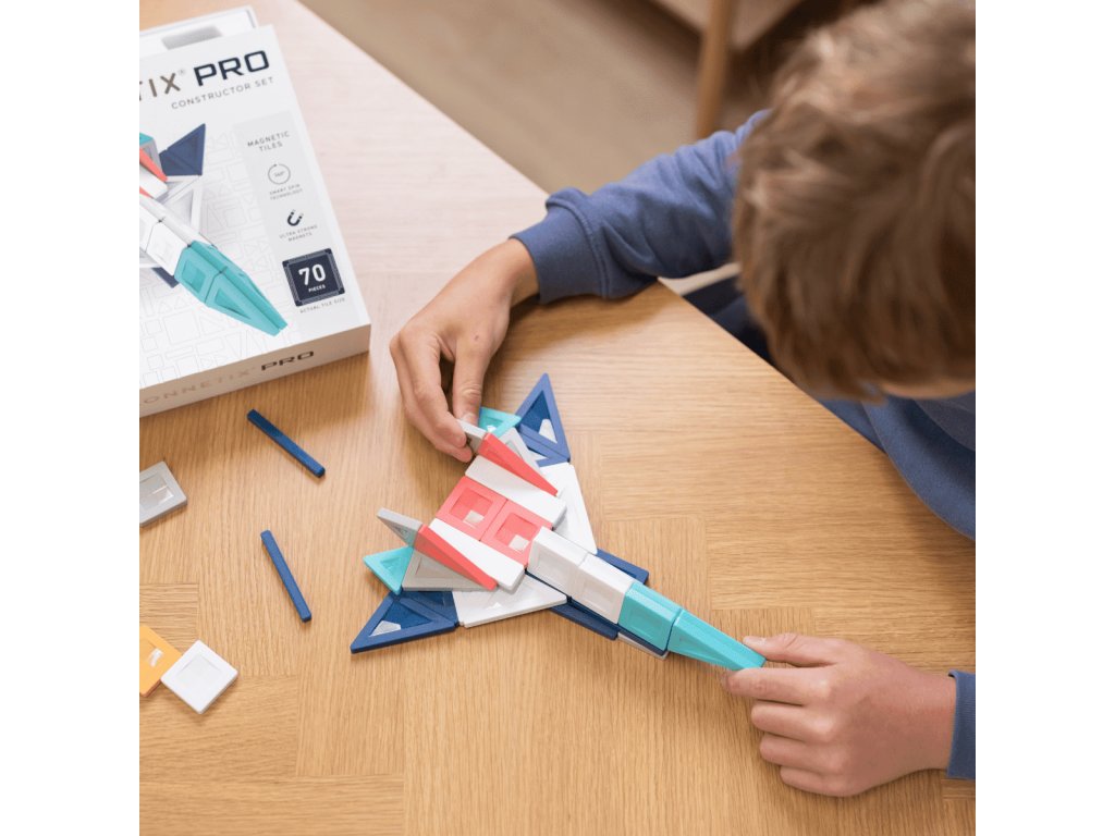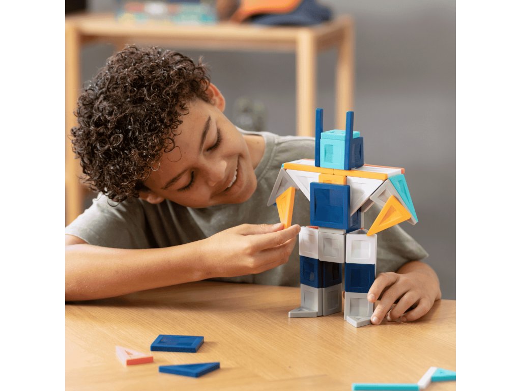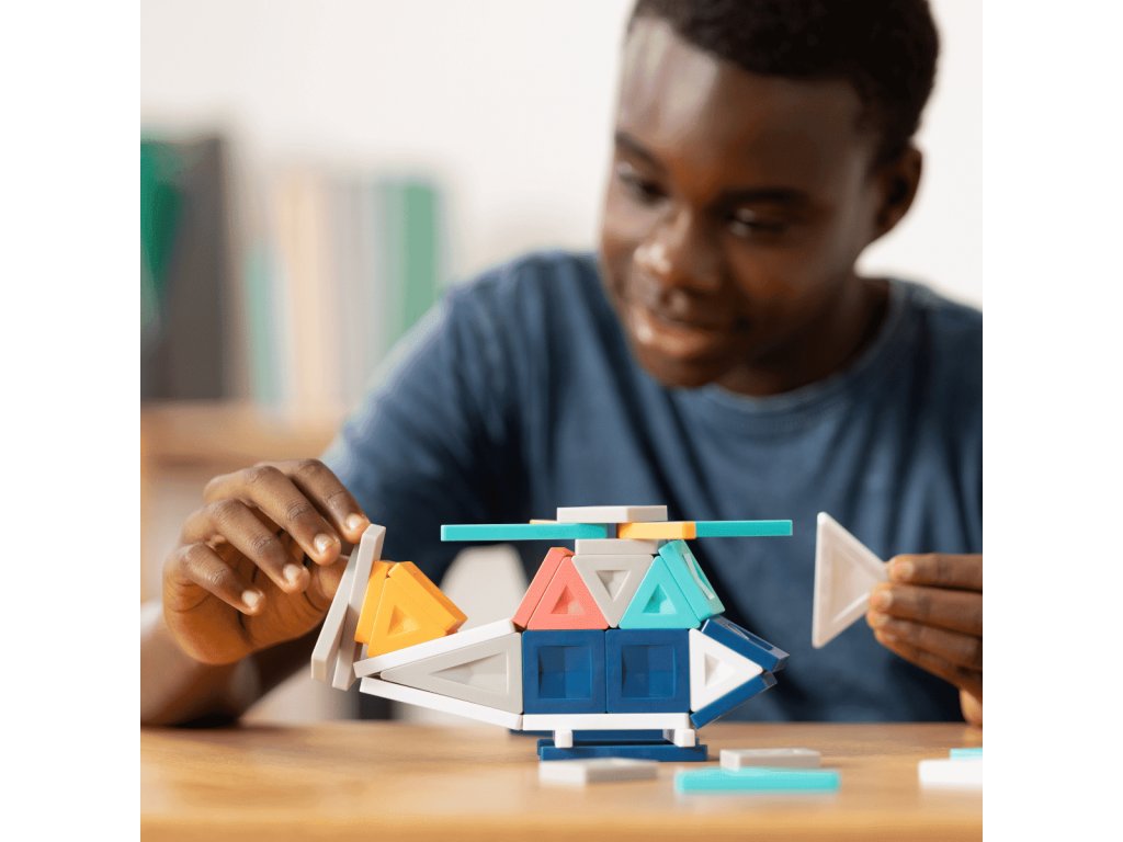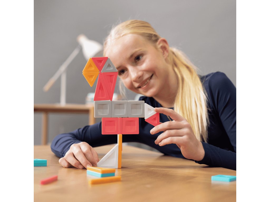 Technologie Smart-Spin, která se neomezuje pouze na nastavení pozic magnetů, umožňuje tvůrcům PRO překrývat, odsazovat a střídat dlaždice novými kreativními způsoby, jak oživit jejich návrhy a objevit neomezené možnosti učení STEAM. Od inženýrských člunů a robotů po navrhování interiérů a nábytku, vytváření postav a stvoření a mnohem více! Tato stavebnice, která obsahuje řadu složitých dílků včetně čtverců, obdélníků, tří typů trojúhelníků a sloupků a prken, je navržena tak, aby inspirovala ke složitějším, detailnějším a funkčnějším výtvorům. A co víc, extra silné magnety umožňují tvůrcům zvednout a sdílet jejich jedinečné návrhy s přáteli, od letu aerodynamickým letadlem až po toulání se postavičkami vesmírem – PRO posouvají limity konstrukce a posouvají interaktivitu na zcela novou úroveň!