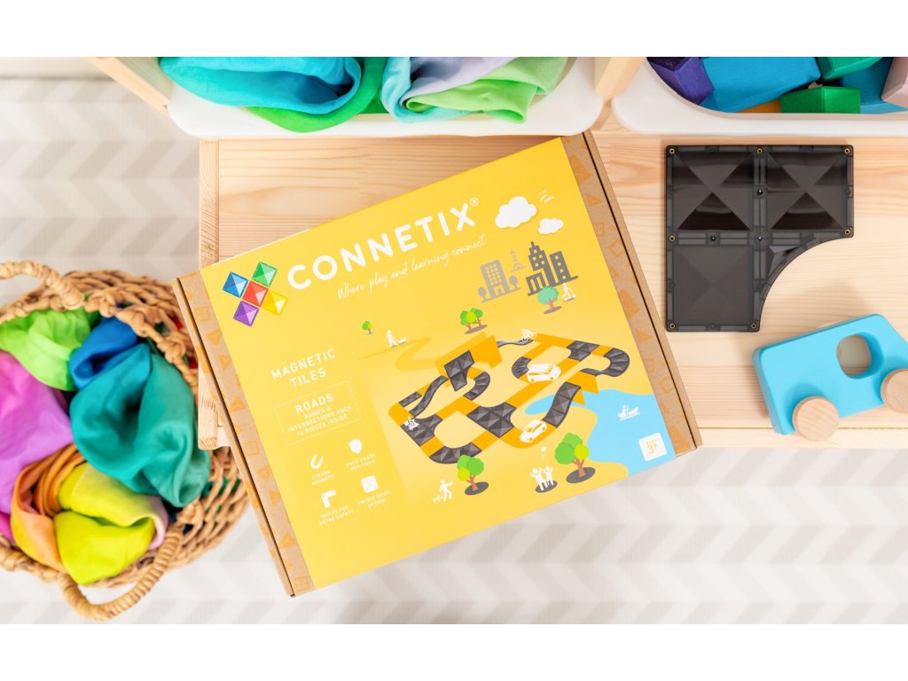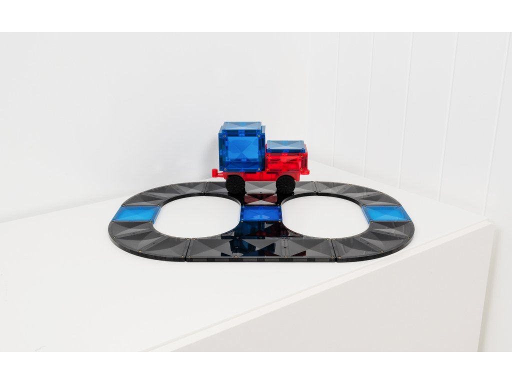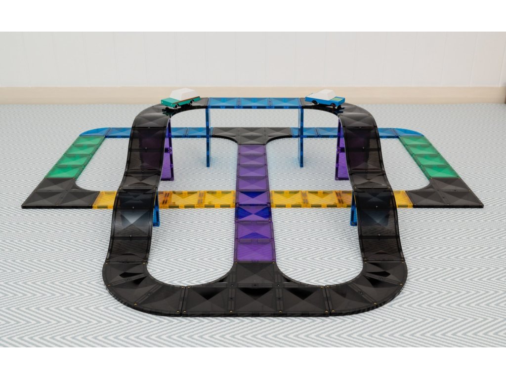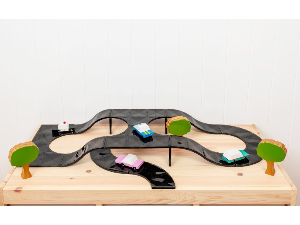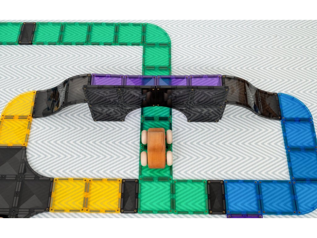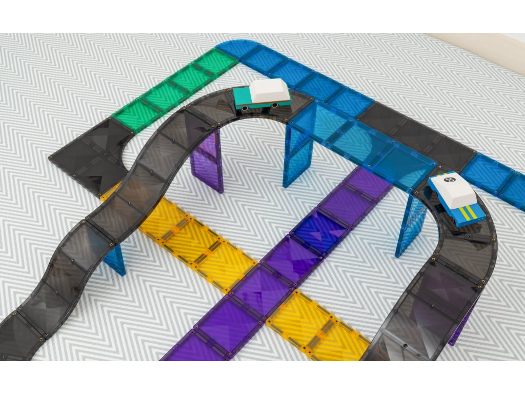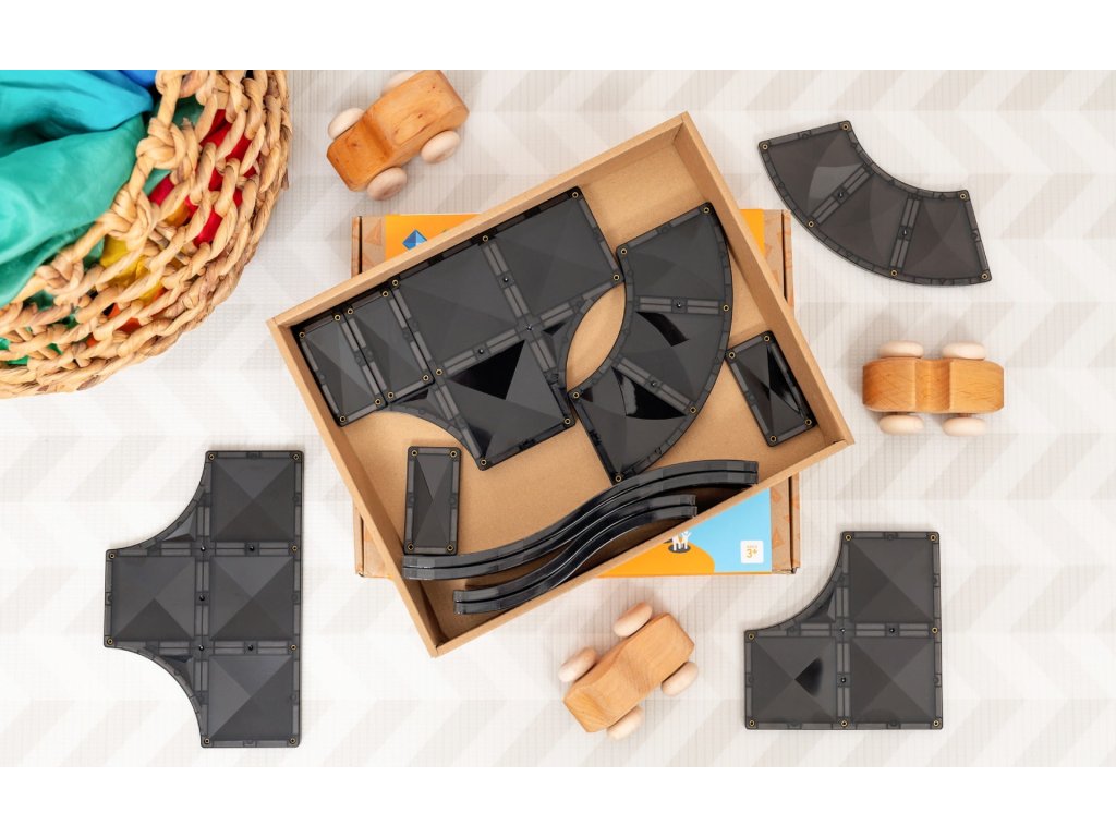 Sada se silnicemi se stane absolutním hitem u vás doma! Obsahuje řadu tvarů magnetických dlaždic, včetně zatáček, křižovatek a dlouhých a krátkých ramp. Dlaždice v černém odstínu je ideální pro stavbu návrhů inspirovaných silnicemi od závodních drah, po letiště, skateparky, města a další! Díky silným magnetům a mnoha spojovacím bodům (včetně zakřivených hran!) vás tento balíček zve k objevování nekonečných herních možností. Tak hurá do toho!