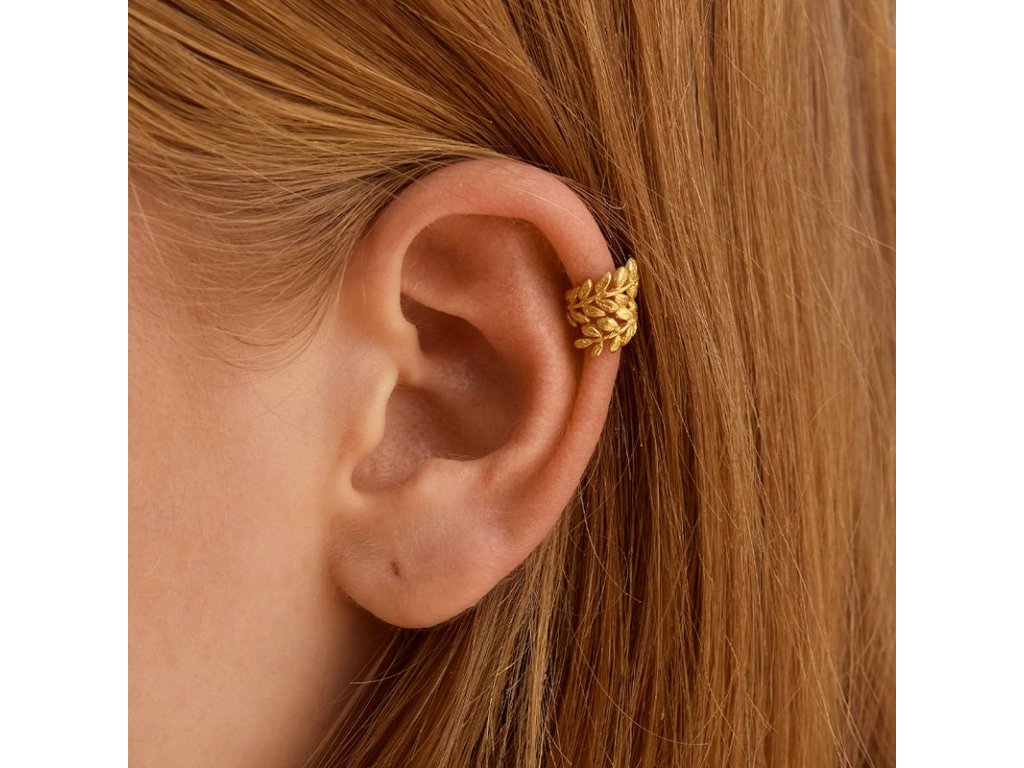 Ear cuff ve tvaru vavřínových lístků zaujme svým jemným, ale výrazným designem inspirovaným antikou. Vavřínové listy ozářené zlatými paprsky vám splní jakýkoli sen, pokud v něj budete věřit. Každý detail listu je precizně zpracovaný a dohromady vytváří elegantní, přirozený motiv. Díky otevřenému tvaru se snadno nasazuje a pohodlně nosí bez nutnosti propíchnutí ucha. Skvěle se hodí k vrstvení s dalšími náušnicemi nebo samostatně jako decentní šperk, který zvýrazní vaši osobitost.