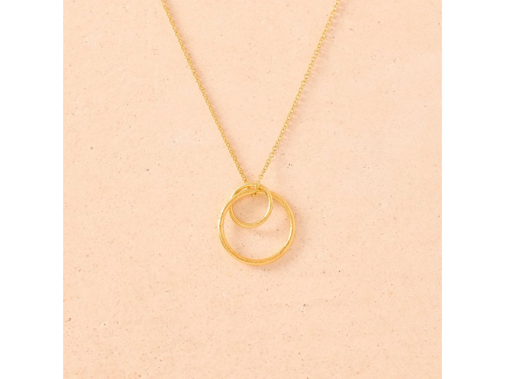 Jemný dámský náhrdelník s jednoduchým designem potěší každou milovnici minimalistických šperků. Dva propletené kruhy, znázorňující harmonické propojení energie Měsíce a Slunce, jsou nadčasový kousek, jenž se bude ve vaší šperkovnici vyjímat a nikdy neomrzí.