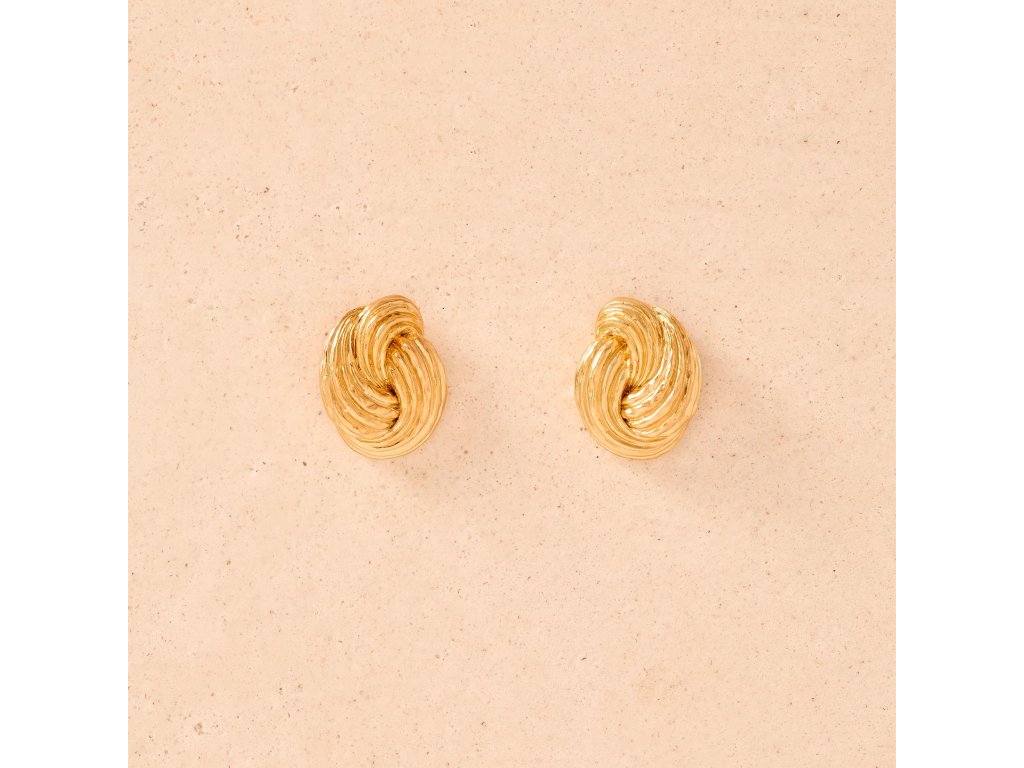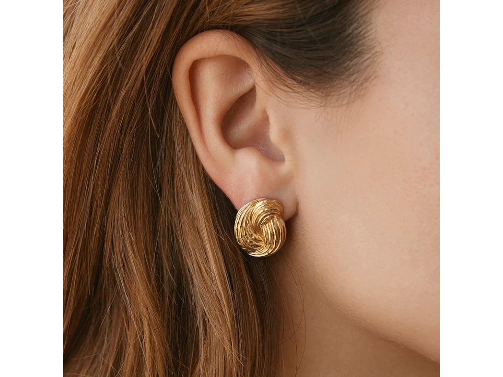 Výrazné, elegantní a s nadčasovým šarmem. Náušnice ve tvaru jemně spleteného uzlu jsou dokonalým doplňkem pro každou příležitost. Jejich plastický tvar a zlatý lesk přitahují pozornost, aniž by působily příliš nápadně. Hodí se k formálnímu outfitu i jednoduchému bílému tričku.