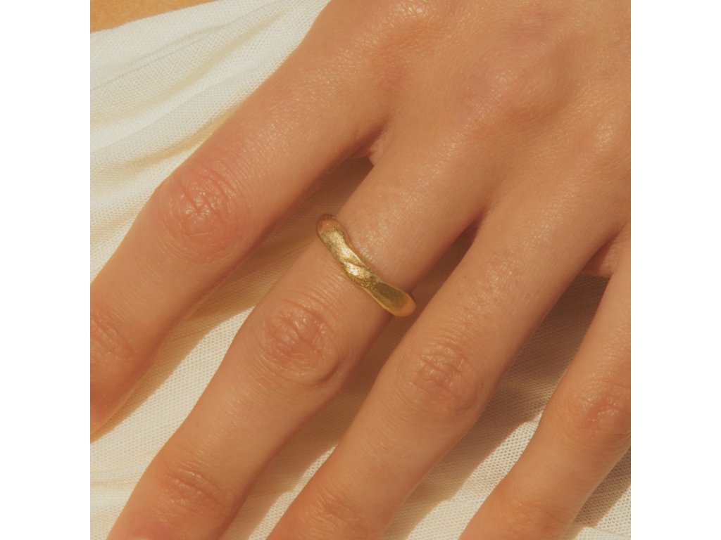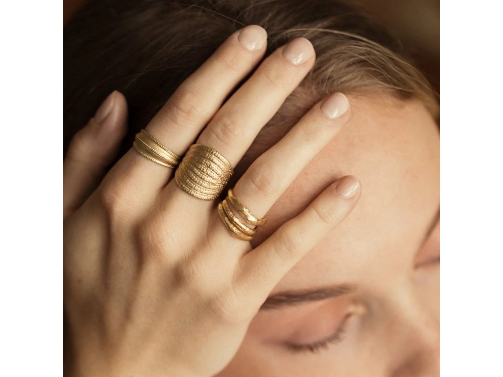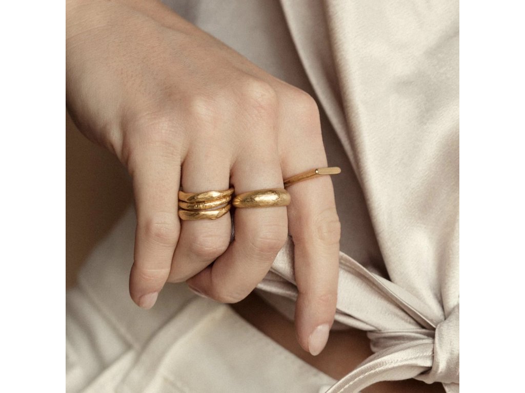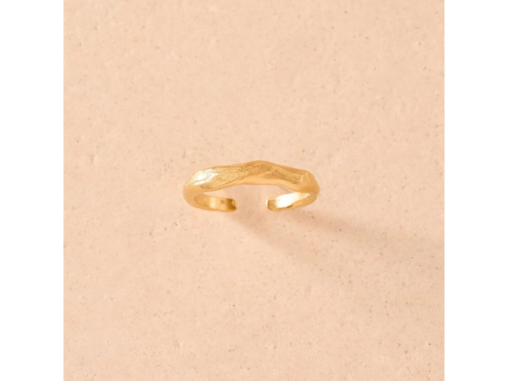 Pozlacený minimalistický prstýnek Zéphir, inspirovaný starověkým římským stylem, si jednoduše zamilujete! Jeho nepravidelný povrch působí žensky, sofistikovaně a bude se vyjímat na prstech každé něžné duše.